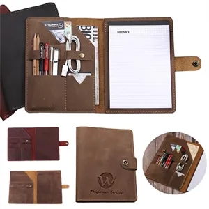 Genuine Leather Pad Folio Portfolios Notebooks with Buckle